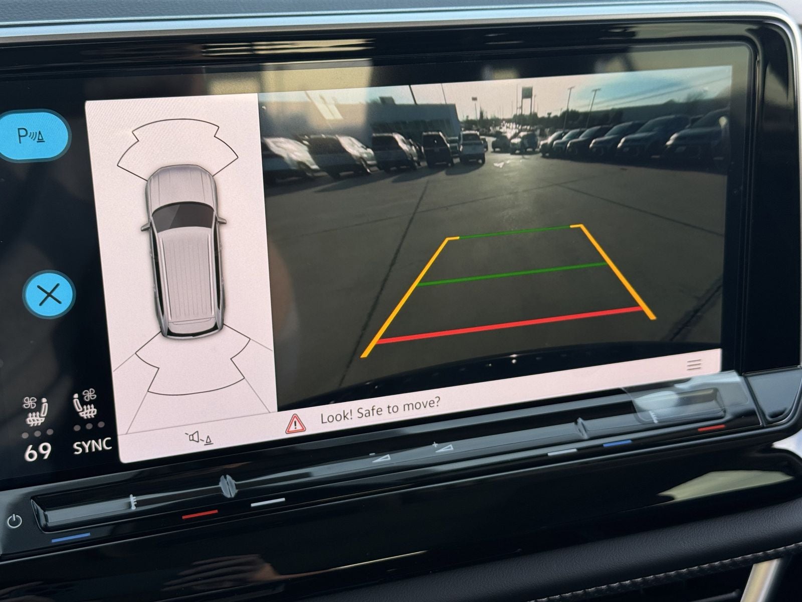 This 2026 Volkswagen Atlas 2.0T SE w/Technology in deep black pearl comes with the following features: 2.0L TSI 8-Speed Automatic with Tiptronic AWD 18 Alloy wheels, 3rd row seats: split-bench, 4-Wheel Disc Brakes, 4-Wheel Independent Suspension, 6 Speakers, ABS brakes, Air Conditioning, AM/FM radio: SiriusXM with 360L, Auto High-beam Headlights, Auto-dimming Rear-View mirror, Automatic temperature control, Brake assist, Bumpers: body-color, Compass, Delay-off headlights, Driver door bin, Driver vanity mirror, Dual front impact airbags, Dual front side impact airbags, Electronic Stability Control, Emergency communication system: VW Car-Net Safe & Secure 5-year, Exterior Parking Camera Rear, Four wheel independent suspension, Front anti-roll bar, Front Bucket Seats, Front Center Armrest, Front dual zone A/C, Front fog lights, Front reading lights, Fully automatic headlights, Garage door transmitter: HomeLink, Heated & Actively Ventilated Front Bucket Seats, Heated door mirrors, Heated front seats, Heated steering wheel, Illuminated entry, Low tire pressure warning, Occupant sensing airbag, Outside temperature display, Overhead airbag, Overhead console, Panic alarm, Passenger door bin, Passenger vanity mirror, Perforated V-Tex Leatherette Seating Surfaces, Power door mirrors, Power driver seat, Power Liftgate, Power steering, Power windows, Radio data system, Radio: MIB3 Composition Media, Rain sensing wipers, Rear air conditioning, Rear anti-roll bar, Rear reading lights, Rear seat center armrest, Rear window defroster, Rear window wiper, Remote keyless entry, Security system, Speed control, Speed-sensing steering, Split folding rear seat, Spoiler, Steering wheel mounted audio controls, Tachometer, Telescoping steering wheel, Tilt steering wheel, Traction control, Trip computer, Turn signal indicator mirrors, Variably intermittent wipers, Ventilated front seats, and Wheels: 20 2-Tone Machined Alloy.