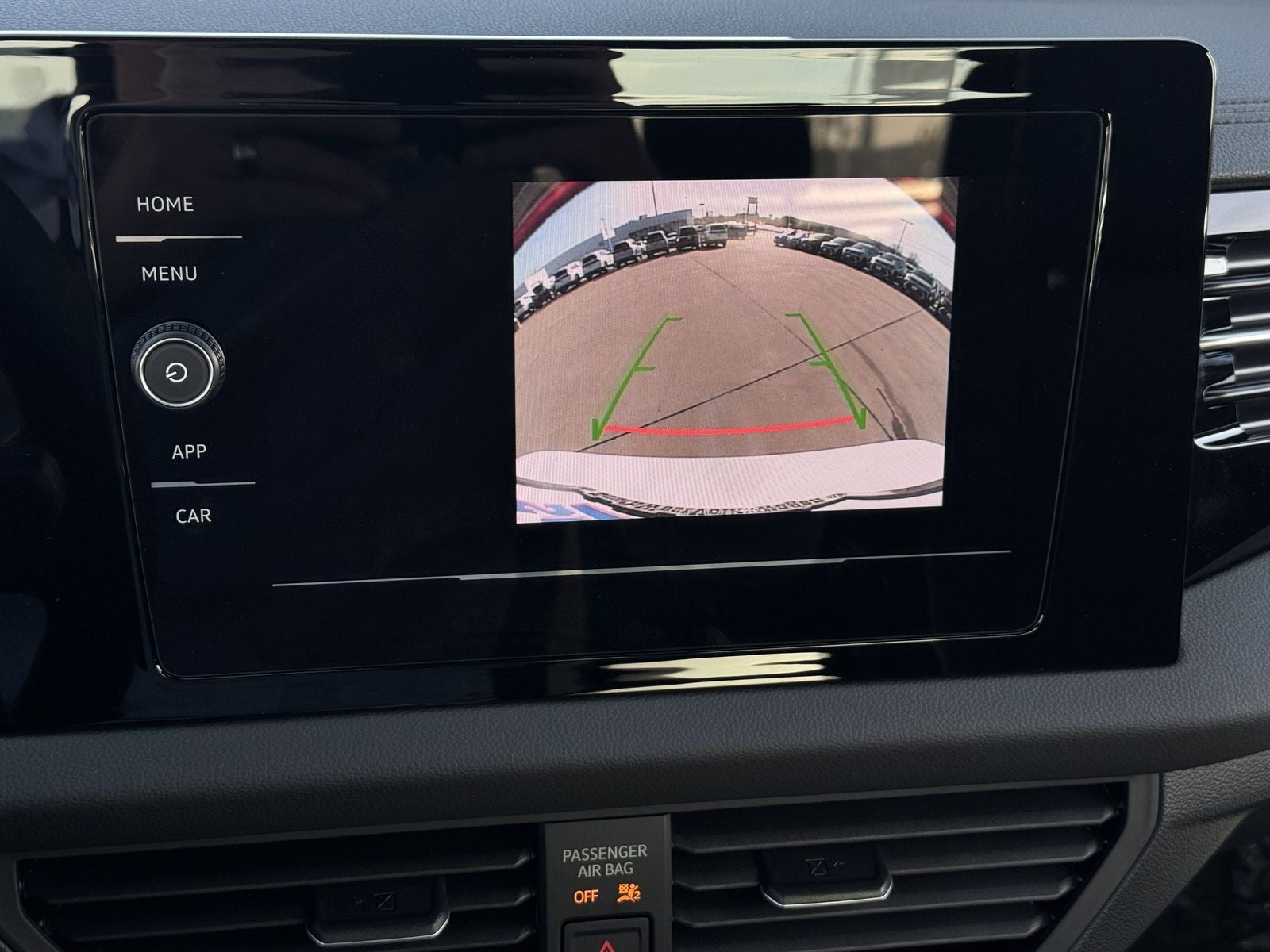 Cloth. This 2026 Volkswagen Jetta 1.5T Sport in Pure White comes with the following features: 1.5L I-4 DI DOHC Turbocharged 8-Speed Automatic with Tiptronic FWD Cloth, 18 Alloy wheels, 4 Speakers, 4-Wheel Disc Brakes, ABS brakes, Active Blind Spot Monitor, Air Conditioning, Auto-dimming Rear-View mirror, Automatic temperature control, Brake assist, Bumpers: body-color, Cloth Seat Trim, Delay-off headlights, Driver door bin, Driver vanity mirror, Dual front impact airbags, Dual front side impact airbags, Electronic Stability Control, Emergency communication system: VW Car-Net Safe & Secure 5-year, Exterior Parking Camera Rear, Front anti-roll bar, Front Bucket Seats, Front Center Armrest, Front dual zone A/C, Front wheel independent suspension, Fully automatic headlights, Heated door mirrors, Heated Front Seats, Heated front seats, Illuminated entry, Leather Shift Knob, Leather steering wheel, Low tire pressure warning, Occupant sensing airbag, Outside temperature display, Overhead airbag, Overhead console, Panic alarm, Passenger door bin, Passenger vanity mirror, Power door mirrors, Power steering, Power windows, Radio data system, Radio: MIB3 Composition Color with 8 Touchscreen, Rain sensing wipers, Rear anti-roll bar, Rear reading lights, Rear seat center armrest, Rear window defroster, Remote keyless entry, Speed control, Speed-sensing steering, Split folding rear seat, Steering wheel mounted audio controls, Tachometer, Telescoping steering wheel, Tilt steering wheel, Traction control, Trip computer, Variably intermittent wipers, and Wheels: 17 2-Tone Machined Alloy.