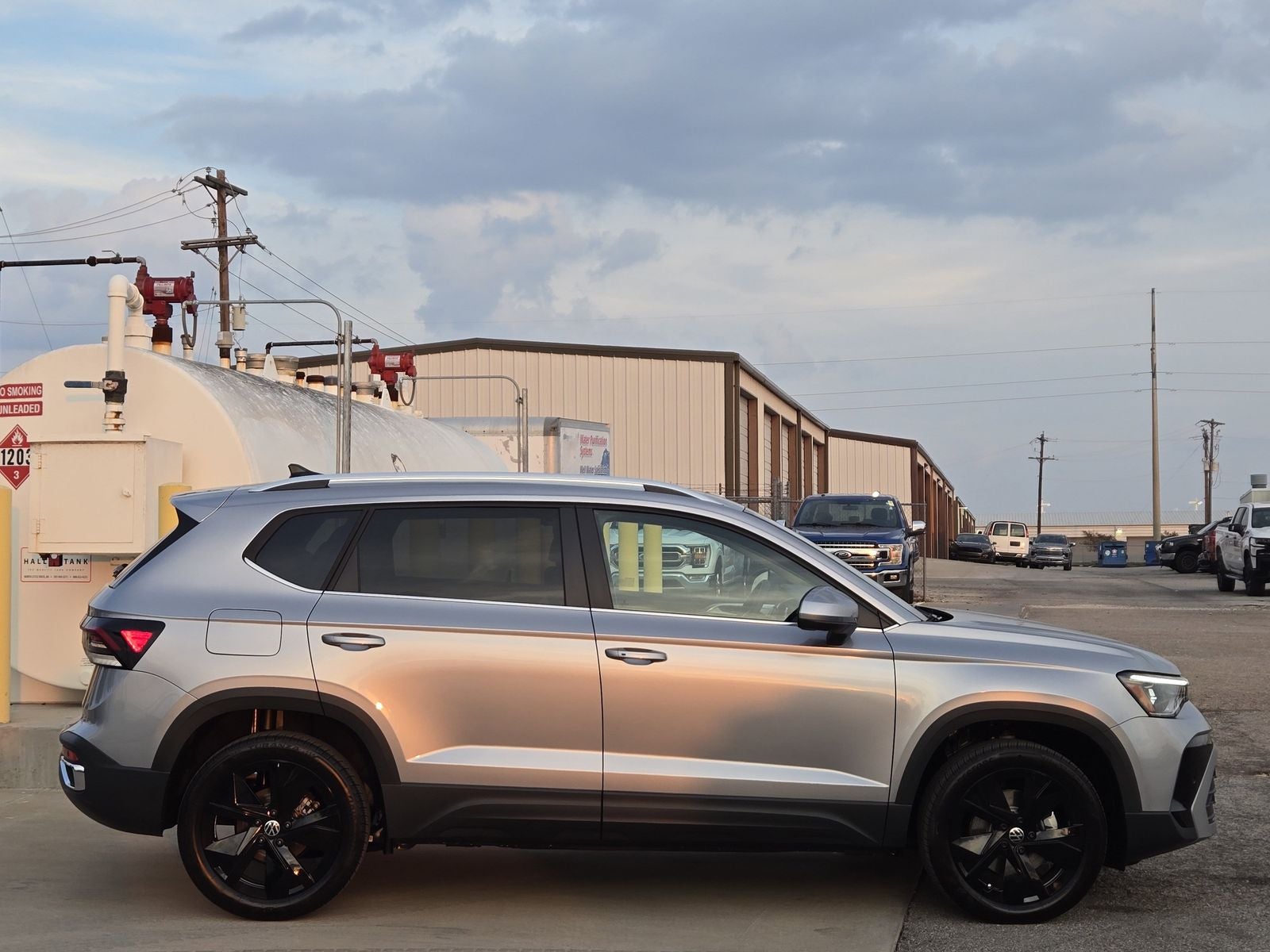 Adaptive Cruise Control, Apple CarPlay & Android Auto, Black Edition Trim, Blackout Appearance Package, Blind Spot Monitoring, Bluetooth®, Hands-Free, Keyless Start, Lane Keep Assist with Lane Centering, Sunroof, Monster Mats (all-weather floor mats). This 2026 Volkswagen Taos 1.5T SE in Pyrite Silver Metallic comes with the following features: 1.5L I4 Turbocharged DOHC 16V LEV3-SULEV30 174hp 8-Speed Automatic with Tiptronic FWD 18 Alloy wheels, 4-Wheel Disc Brakes, 6 Speakers, ABS brakes, Active Blind Spot Monitor, Air Conditioning, AM/FM radio: SiriusXM with 360L, Auto High-beam Headlights, Automatic temperature control, Brake assist, Bumpers: body-color, CloudTex & Cloth Seating Surfaces, Compass, Delay-off headlights, Driver door bin, Driver vanity mirror, Dual front impact airbags, Dual front side impact airbags, Electronic Stability Control, Emergency communication system: VW Car-Net Safe & Secure 5-year, Exterior Parking Camera Rear, Front anti-roll bar, Front Bucket Seats, Front Center Armrest, Front dual zone A/C, Front reading lights, Front Strut Rear Torsion Beam Suspension, Front wheel independent suspension, Fully automatic headlights, Heated door mirrors, Heated Front Bucket Seats, Heated front seats, Heated steering wheel, Illuminated entry, Leather Shift Knob, Low tire pressure warning, Occupant sensing airbag, Outside temperature display, Overhead airbag, Overhead console, Panic alarm, Passenger door bin, Passenger vanity mirror, Power door mirrors, Power driver seat, Power steering, Power windows, Radio data system, Radio: MIB3 Composition Media AM/FM/HD, Rain sensing wipers, Rear anti-roll bar, Rear seat center armrest, Rear window defroster, Rear window wiper, Remote keyless entry, Security system, Speed control, Speed-sensing steering, Split folding rear seat, Spoiler, Steering wheel mounted audio controls, Tachometer, Telescoping steering wheel, Tilt steering wheel, Traction control, Trip computer, Variably intermittent wipers, and Wheels: 18 2-Tone Machined Alloy.