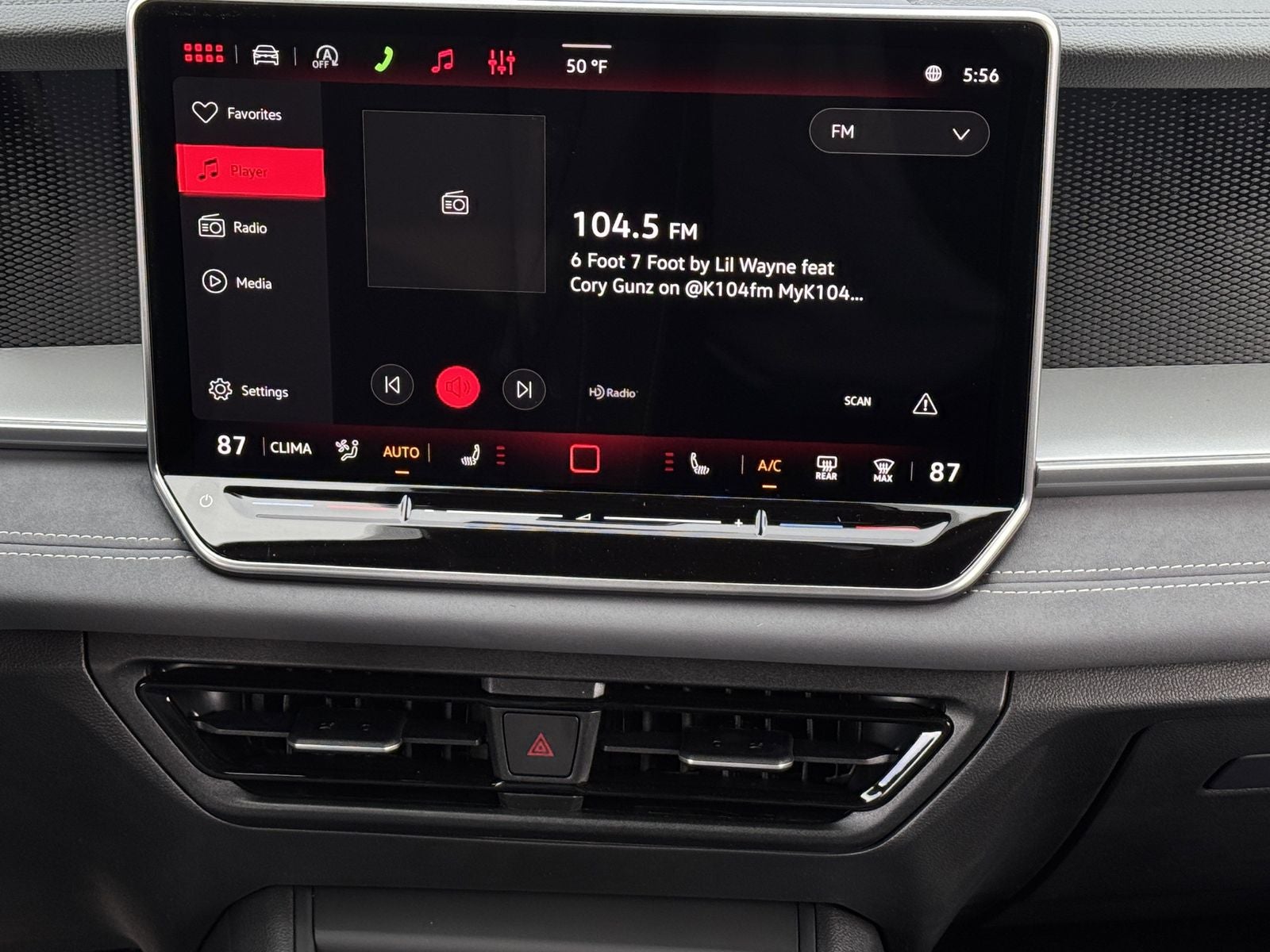 - MIB4 Composition Media Touchscreen w/AM/FM Radio -inc: WMA/MP3/FLAC player w/USB, 12.9" touchscreen multi-function center display w/backlit sliders, voice control, 6 speakers + center speaker (7 speakers total) sound system, capability for in-vehicle 4G LTE enabled Wi-Fi (cellular data plan required; includes limited trial), capability for connected vehicle services (capabilities for services vary; requires enrollment or subscription), Bluetooth® connectivity (for compatible devices), SiriusXM w/360L (w/3-month free trial subscription; 360L services require acceptance of Car-Net terms), App-Connect smartphone integration (w/Apple CarPlay, Android Auto and MirrorLink) via USB, wireless App-Connect smartphone integration (for compatible devices) w/multi-phone pairing capability, 45W fast charging (for compatible mobile phones and accessories) via USB in both rows and Qi wireless inductive charger, cooled, up to 15W (for compatible mobile phones and accessories) All connected vehicle services are subject to terms and limitations. Some services require a paid subscription. See dealer or vw.com/connected for important details.