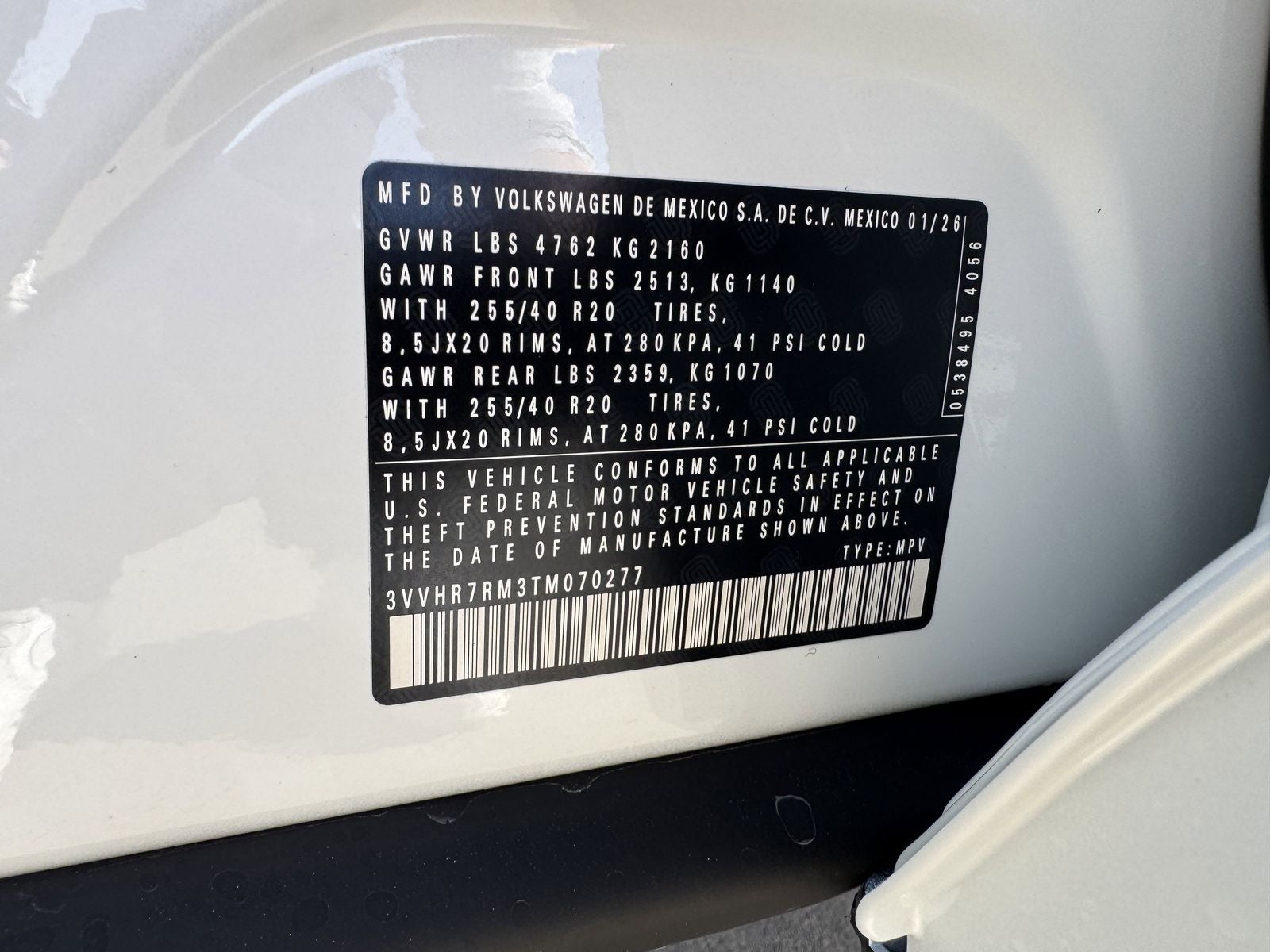 This 2026 Volkswagen Tiguan 2.0T SE R-Line Black in opal white pearl comes with the following features: 2.0L TSI DOHC 8-Speed Automatic FWD 18 Alloy wheels, 4-Wheel Disc Brakes, 4-Wheel Independent Suspension, 7 Speakers, ABS brakes, Air Conditioning, AM/FM radio: SiriusXM with 360L, Auto High-beam Headlights, Auto-dimming Rear-View mirror, Automatic temperature control, Brake assist, Bumpers: body-color, Compass, Delay-off headlights, Driver door bin, Driver vanity mirror, Dual front impact airbags, Dual front side impact airbags, Electronic Stability Control, Emergency communication system, Exterior Parking Camera Rear, Four wheel independent suspension, Front anti-roll bar, Front Bucket Seats, Front Center Armrest, Front dual zone A/C, Front reading lights, Fully automatic headlights, Heads-Up Display, Heated door mirrors, Heated Front Seats, Heated front seats, Illuminated entry, Knee airbag, Leather Shift Knob, Leather steering wheel, Low tire pressure warning, Occupant sensing airbag, Outside temperature display, Overhead airbag, Overhead console, Panic alarm, Passenger door bin, Passenger vanity mirror, Perforated V-Tex Leatherette Seating Surfaces, Power door mirrors, Power driver seat, Power Liftgate, Power moonroof: Panoramic, Power steering, Power windows, Radio data system, Radio: MIB4 Composition Media Touchscreen with AM/FM, Rain sensing wipers, Rear anti-roll bar, Rear reading lights, Rear seat center armrest, Rear side impact airbag, Rear window defroster, Rear window wiper, Remote keyless entry, Security system, Speed control, Speed-sensing steering, Split folding rear seat, Spoiler, Sport steering wheel, Steering wheel mounted audio controls, Tachometer, Telescoping steering wheel, Tilt steering wheel, Traction control, Trip computer, Turn signal indicator mirrors, Variably intermittent wipers, and Wheels: 20 Black Painted Alloy.