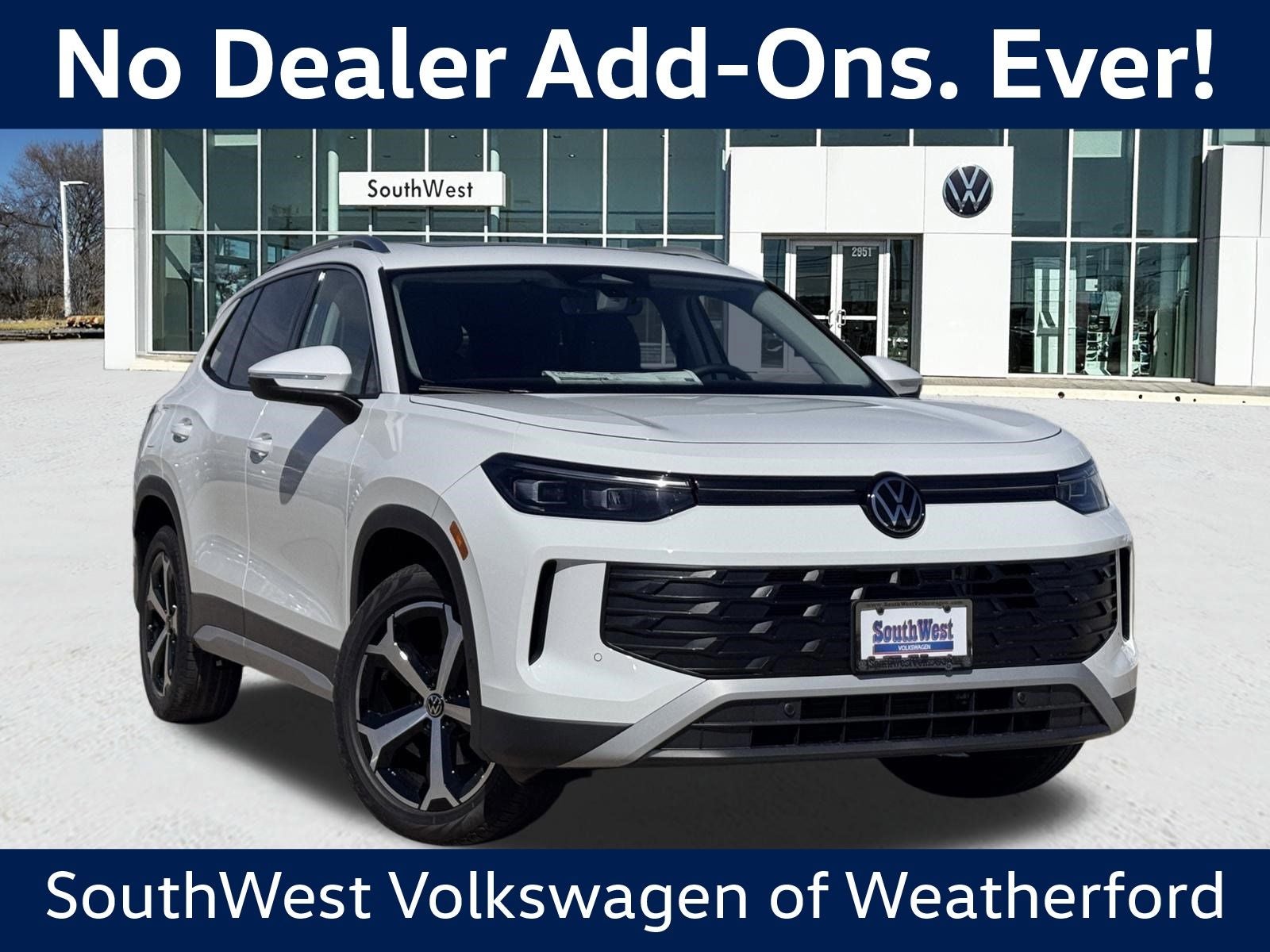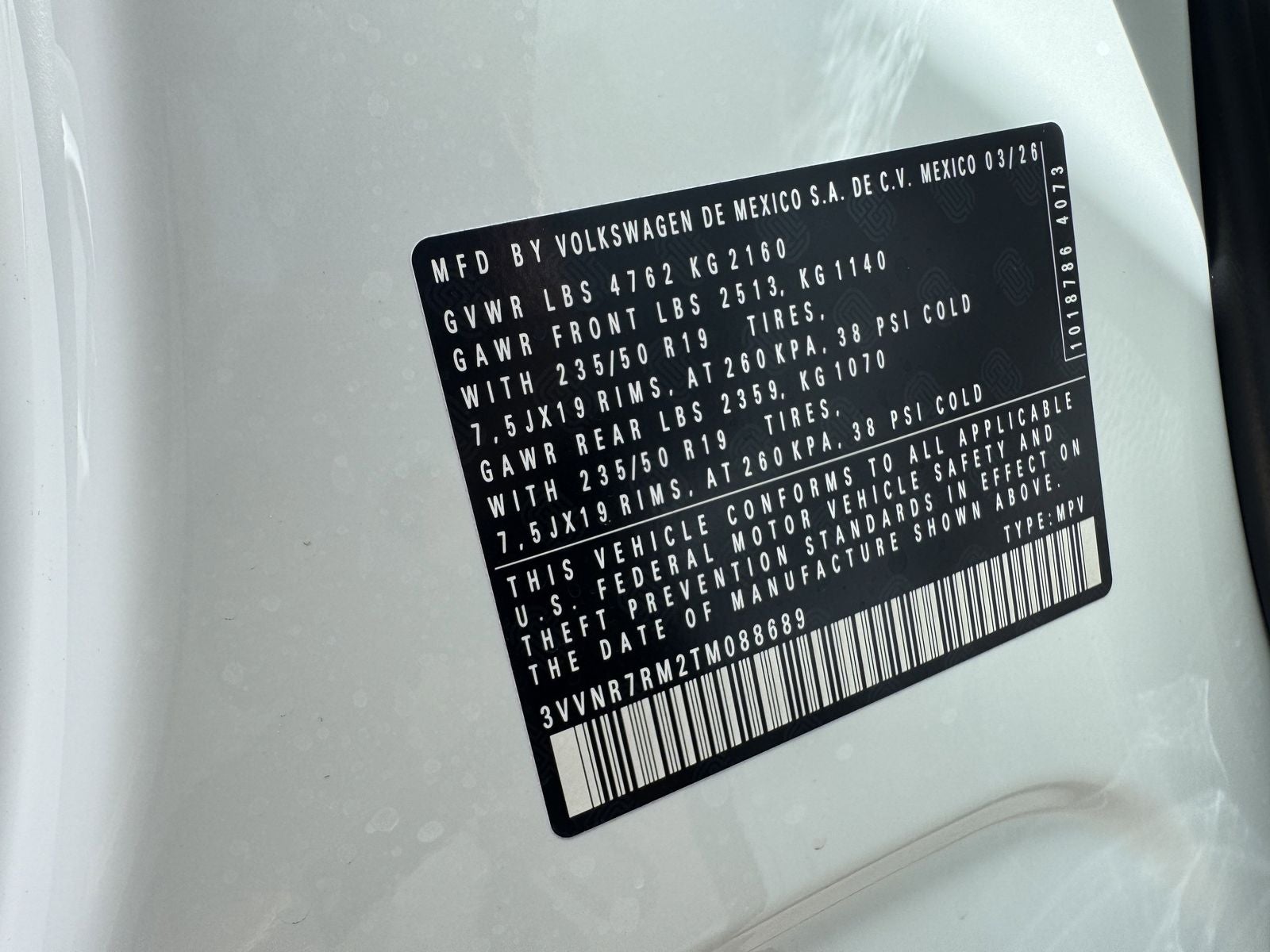 This 2026 Volkswagen Tiguan 2.0T SE in Pure White comes with the following features: 2.0L TSI DOHC 8-Speed Automatic FWD 18 Alloy wheels, 4-Wheel Disc Brakes, 4-Wheel Independent Suspension, 7 Speakers, ABS brakes, Air Conditioning, AM/FM radio: SiriusXM with 360L, Auto High-beam Headlights, Auto-dimming Rear-View mirror, Automatic temperature control, Brake assist, Bumpers: body-color, Compass, Delay-off headlights, Driver door bin, Driver vanity mirror, Dual front impact airbags, Dual front side impact airbags, Electronic Stability Control, Emergency communication system, Exterior Parking Camera Rear, Four wheel independent suspension, Front anti-roll bar, Front Bucket Seats, Front Center Armrest, Front dual zone A/C, Front reading lights, Fully automatic headlights, Heated door mirrors, Heated Front Seats, Heated front seats, Illuminated entry, Knee airbag, Leather Shift Knob, Low tire pressure warning, Occupant sensing airbag, Outside temperature display, Overhead airbag, Overhead console, Panic alarm, Passenger door bin, Passenger vanity mirror, Perforated V-Tex Leatherette Seating Surfaces, Power door mirrors, Power driver seat, Power Liftgate, Power steering, Power windows, Radio data system, Radio: MIB4 Composition Media Touchscreen with AM/FM, Rain sensing wipers, Rear anti-roll bar, Rear reading lights, Rear seat center armrest, Rear side impact airbag, Rear window defroster, Rear window wiper, Remote keyless entry, Security system, Speed control, Speed-sensing steering, Split folding rear seat, Spoiler, Steering wheel mounted audio controls, Tachometer, Telescoping steering wheel, Tilt steering wheel, Traction control, Trip computer, Turn signal indicator mirrors, Variably intermittent wipers, and Wheels: 19 2-Tone Machined Alloy.