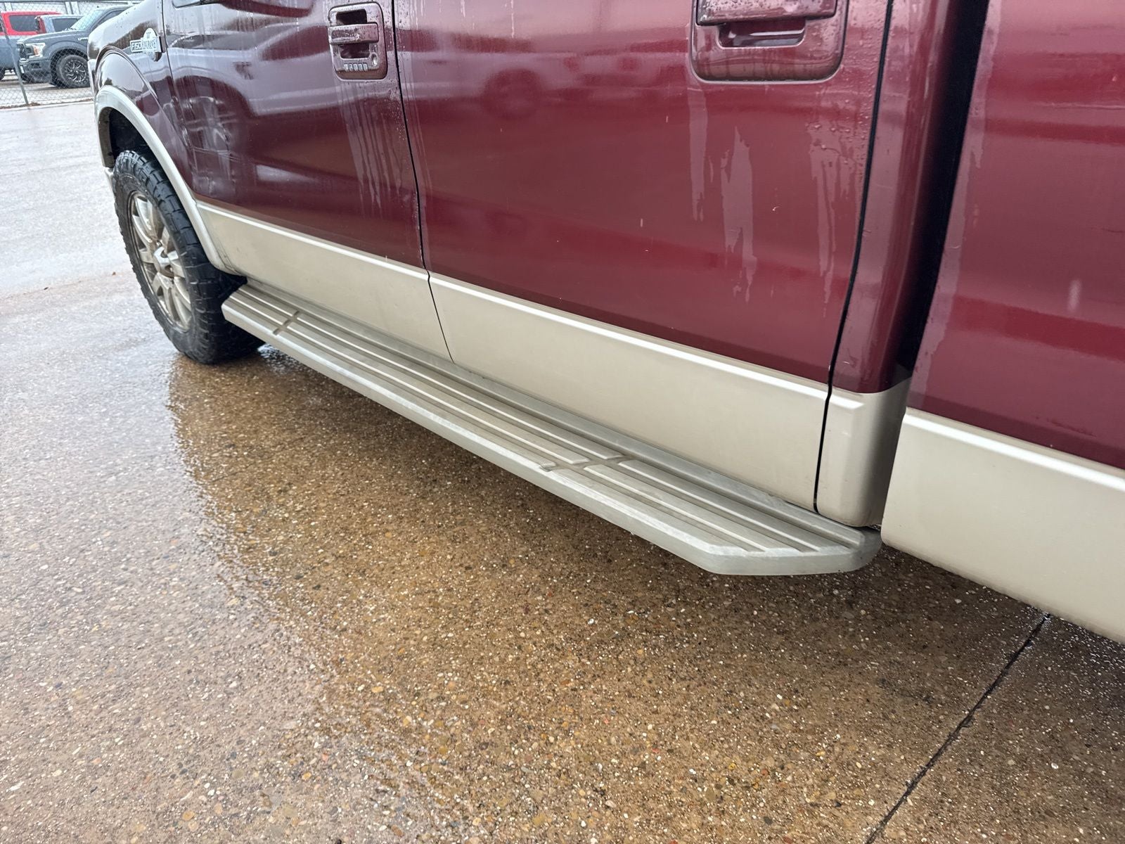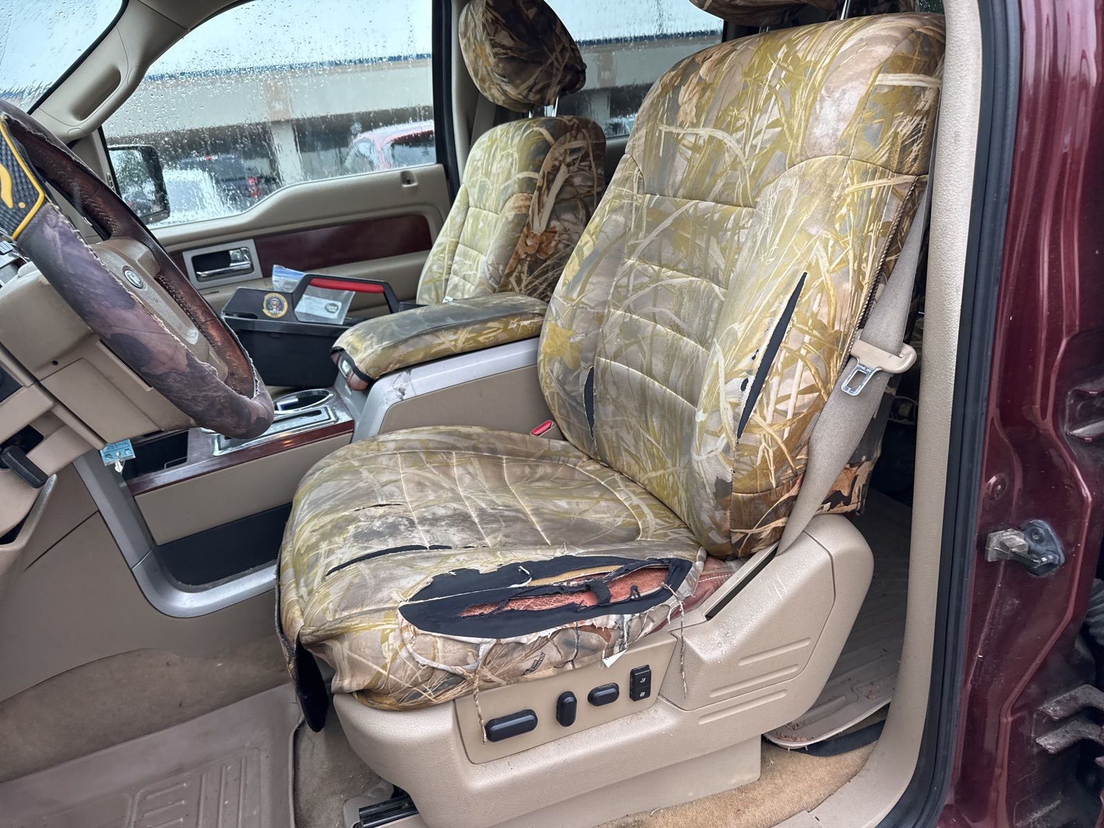 This 2010 Ford F-150 King Ranch in White comes with the following features: 5.4L V8 EFI 24V FFV 6-Speed Automatic Electronic 4WD GVWR: 7,200 lbs Payload Package, 4WD, 18 Bright Aluminum Wheels, 3.31 Axle Ratio, 4 Speakers, 4-Wheel Disc Brakes, ABS brakes, Adjustable pedals, Air Conditioning, Alloy wheels, AM/FM radio: SIRIUS, AM/FM Stereo/Clock/Single CD, Auto-dimming door mirrors, Auto-dimming Rear-View mirror, Automatic temperature control, Bumpers: chrome, CD player, Compass, Delay-off headlights, Driver door bin, Driver vanity mirror, Dual front impact airbags, Dual front side impact airbags, Electronic Stability Control, Front anti-roll bar, Front Center Armrest w/Storage, Front dual zone A/C, Front fog lights, Front reading lights, Front wheel independent suspension, Fully automatic headlights, Heated door mirrors, Heated front seats, Illuminated entry, Leather steering wheel, Leather-Trimmed 40/20/40 Front Seat, Low tire pressure warning, Memory seat, Occupant sensing airbag, Outside temperature display, Overhead airbag, Overhead console, Panic alarm, Passenger door bin, Passenger vanity mirror, Pedal memory, Power door mirrors, Power driver seat, Power passenger seat, Power Sliding Rear Window w/Defrost & Privacy Tint, Power steering, Power windows, Radio data system, Rear reading lights, Rear seat center armrest, Rear step bumper, Rear window defroster, Remote keyless entry, Speed control, Split folding rear seat, Steering wheel mounted audio controls, Tachometer, Tilt steering wheel, Traction control, Trip computer, Turn signal indicator mirrors, and Variably intermittent wipers.