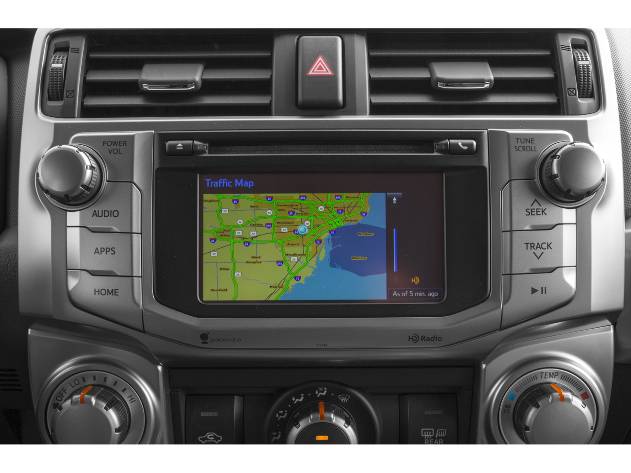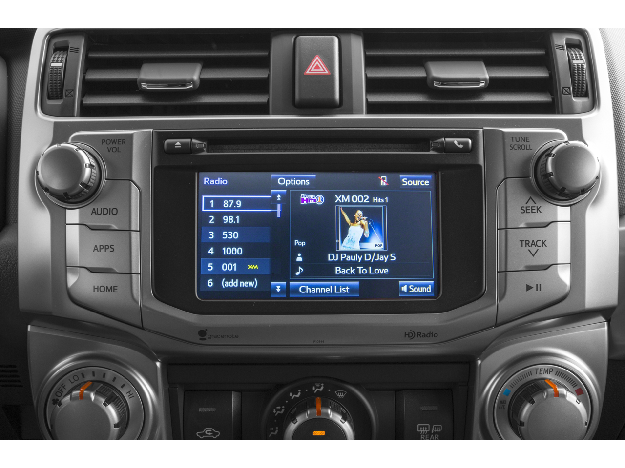 - Radio: Entune Audio Plus -inc: Entune Multimedia bundle (6.1-inch high resolution touch-screen display, AM/FM CD player, MP3/WMA playback capability, auxiliary audio jack, USB 2.0 port w/iPod connectivity and control, advanced voice recognition, hands-free phone capability, phone book access and music streaming via Bluetooth wireless technology), SiriusXM All Access Radio w/3-month complimentary trial, HD Radio, HD traffic and weather in major metro areas, and integrated backup camera display, Entune App Suite includes Bing, Facebook Places, iHeartRadio, MovieTickets.com, OpenTable, Pandora and Yelp; real-time info including traffic, weather, fuel prices, sports and stocks Access to Entune services is complimentary for three years. See toyota.com/entune for details.
