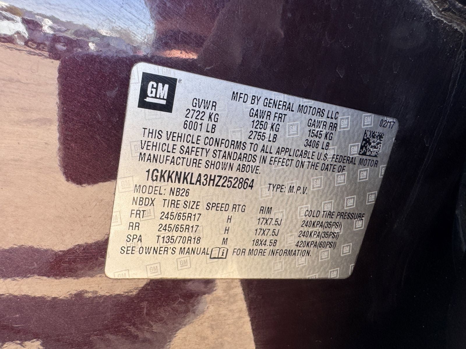 - Front Tire Size: P245/65R17