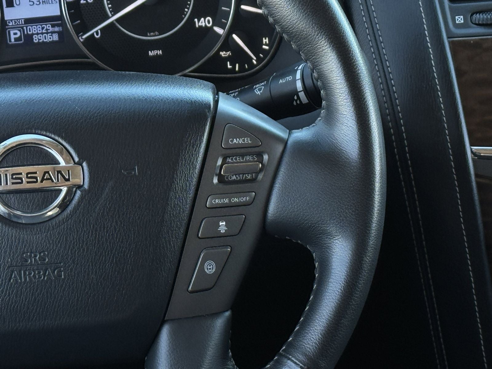 This 2018 Nissan Armada Platinum 2WD delivers full-size SUV space, premium comfort, and confident V8 performance in a refined, family-ready package. Powered by Nissan’s proven 5.6L V8 engine paired with a 7-speed automatic transmission, the Armada provides smooth acceleration, strong highway performance, and a quiet, composed ride.