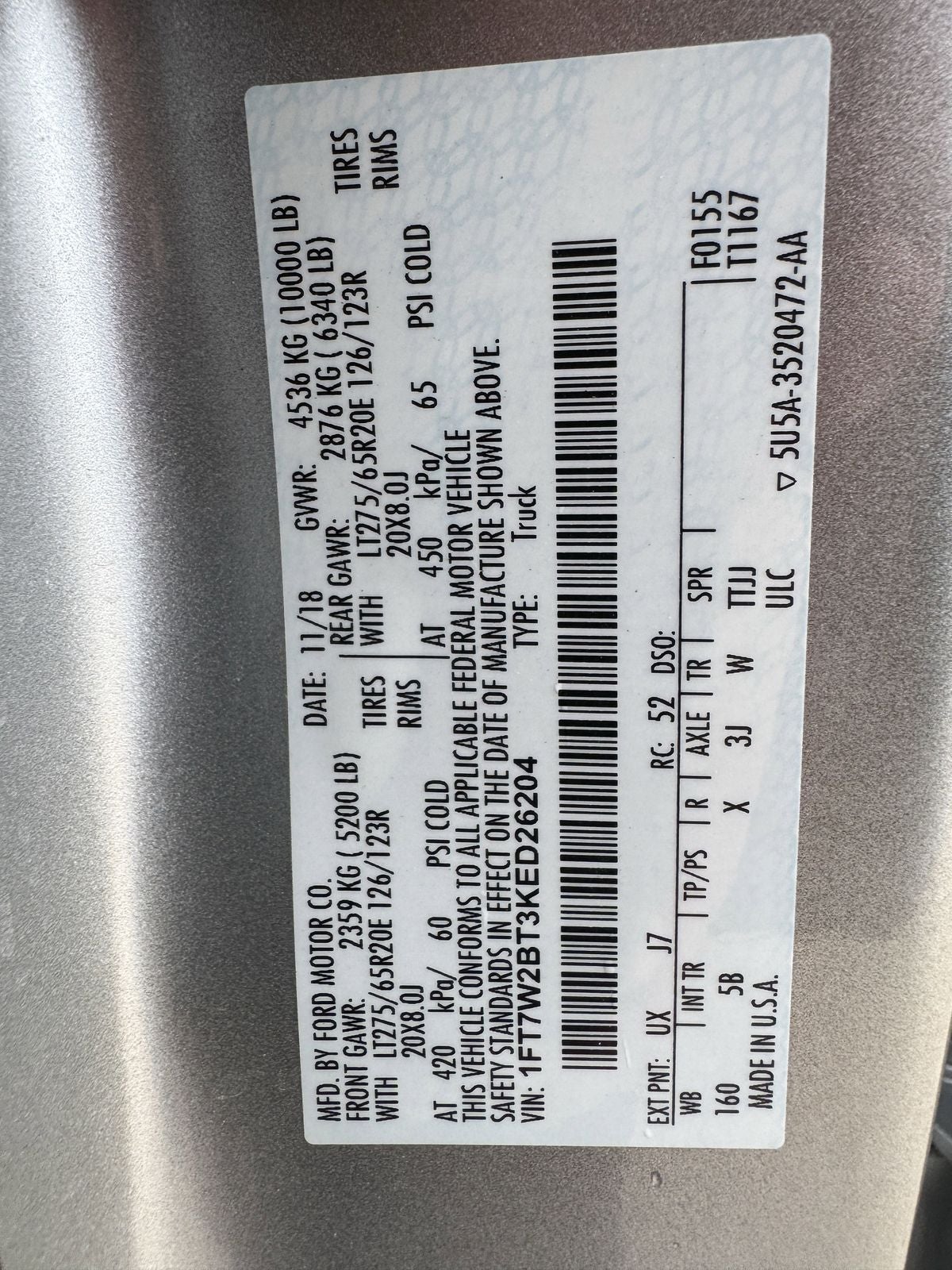 - Front Tire Size: LT275/65SR18