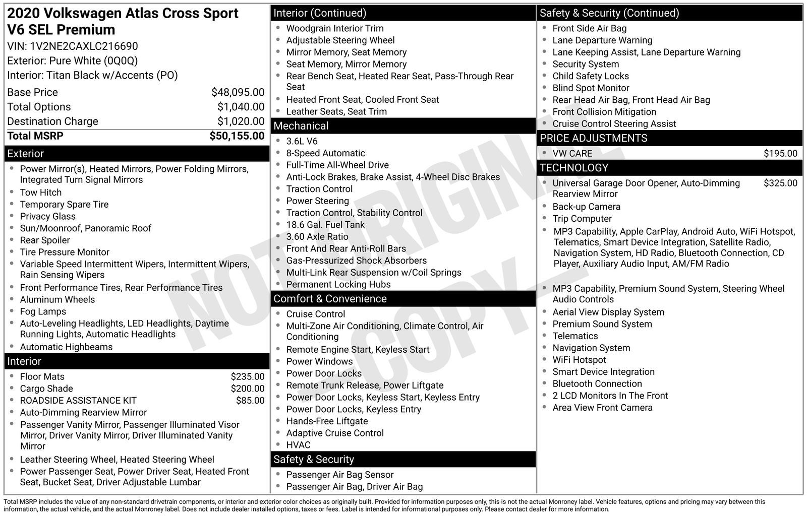 - Vehicle Name: Volkswagen Atlas Cross Sport