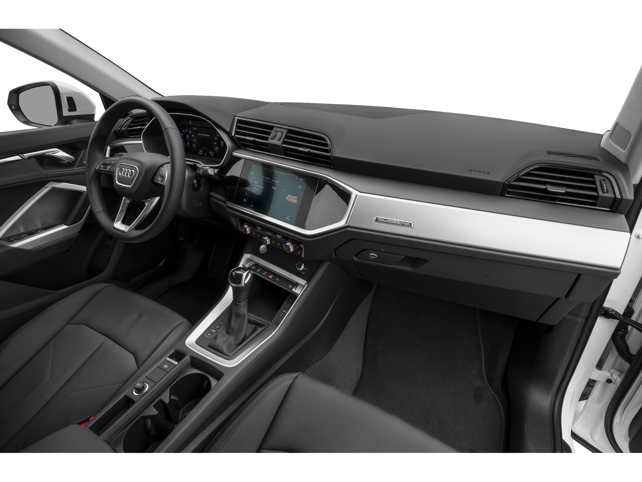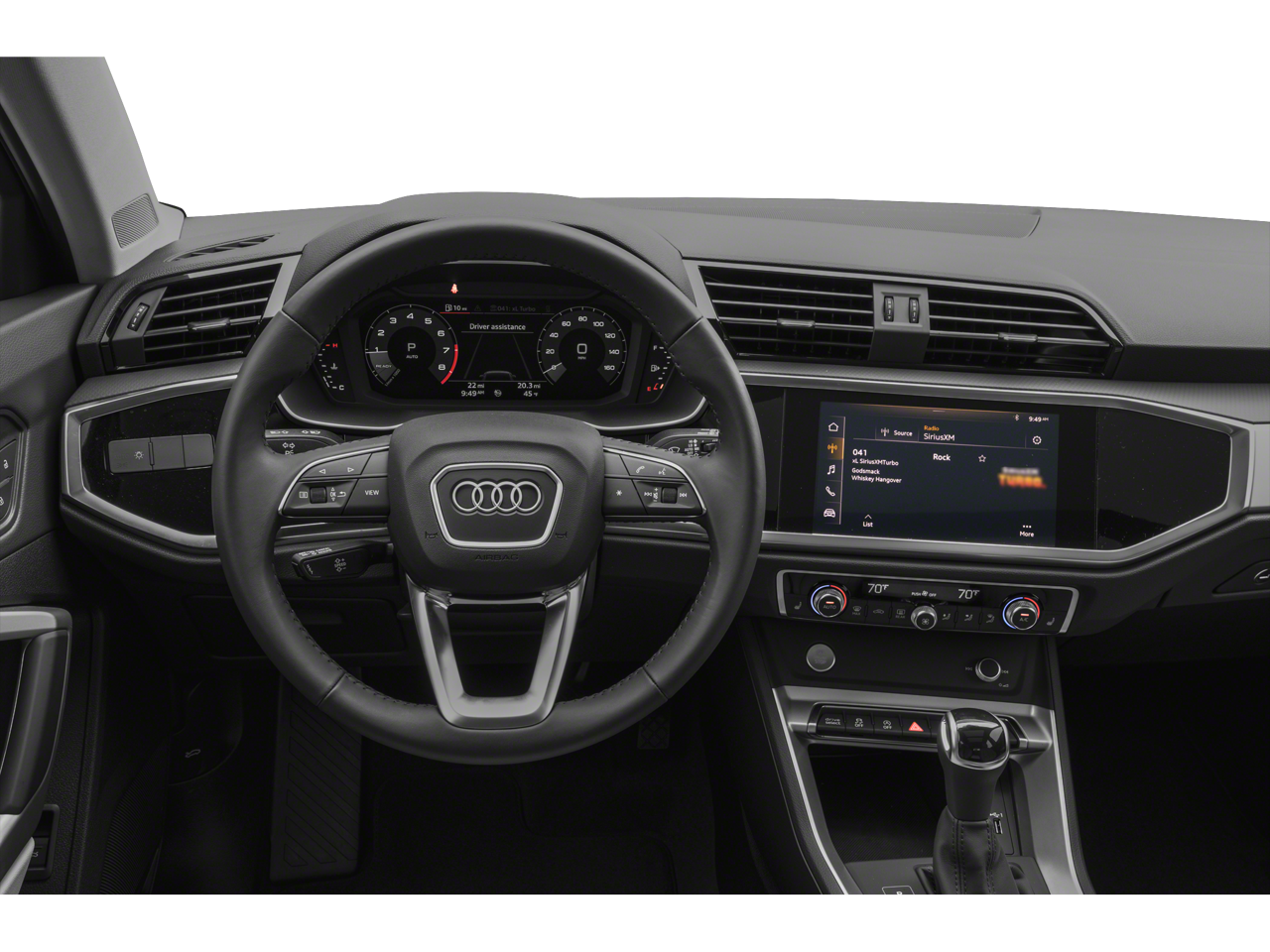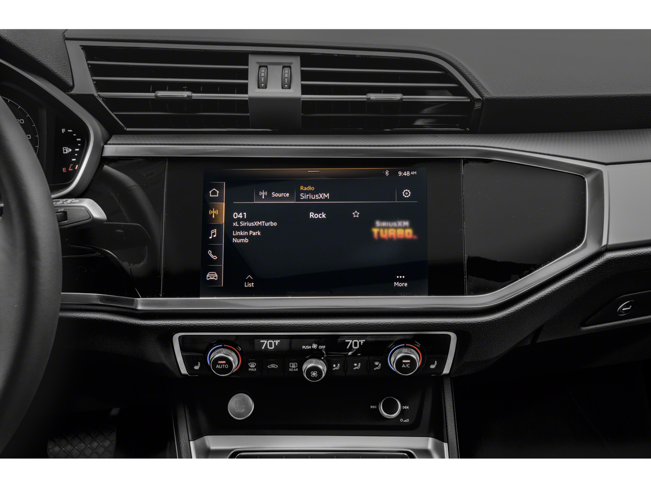 This 2022 Audi Q3 Premium Plus S Line quattro in comes with the following features: 2.0L 4-Cylinder TFSI 8-Speed Automatic with Tiptronic quattro 10 Speakers, 18 Alloy wheels, 3.533 Axle Ratio, 4-Wheel Disc Brakes, ABS brakes, Air Conditioning, AM/FM radio, Audi smartphone interface (Apple CarPlay/Android Auto), Auto High-beam Headlights, Automatic temperature control, Brake assist, Bumpers: body-color, Delay-off headlights, Driver door bin, Driver vanity mirror, Dual front impact airbags, Dual front side impact airbags, Electronic Stability Control, Emergency communication system: Audi connect CARE, Exterior Parking Camera Rear, Four wheel independent suspension, Front anti-roll bar, Front Bucket Seats, Front Center Armrest, Front dual zone A/C, Front fog lights, Front reading lights, Fully automatic headlights, Heated door mirrors, Heated Front Bucket Seats, Heated front seats, Illuminated entry, Knee airbag, Leather Seating Surfaces, Leather Shift Knob, Leather steering wheel, Low tire pressure warning, Occupant sensing airbag, Outside temperature display, Overhead airbag, Overhead console, Panic alarm, Passenger door bin, Passenger vanity mirror, Power door mirrors, Power driver seat, Power Liftgate, Power moonroof: Panoramic, Power passenger seat, Power steering, Power windows, Radio data system, Radio: Audi Sound System, Rain sensing wipers, Rear air conditioning, Rear anti-roll bar, Rear fog lights, Rear reading lights, Rear seat center armrest, Rear window defroster, Rear window wiper, Remote keyless entry, Speed control, Speed-sensing steering, Split folding rear seat, Spoiler, Steering wheel mounted audio controls, Tachometer, Telescoping steering wheel, Tilt steering wheel, Traction control, Trip computer, Turn signal indicator mirrors, Variably intermittent wipers, and Wheels: 18 5-V-Spoke-S Design.