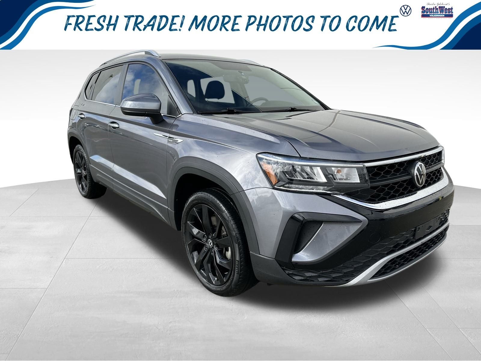 This 2022 Volkswagen Taos 1.5T SE in comes with the following features: 1.5L I4 Turbocharged DOHC 16V LEV3-SULEV30 158hp 8-Speed Automatic with Tiptronic FWD 18 Alloy wheels, 3.23 Axle Ratio, 4-Wheel Disc Brakes, 6 Speakers, ABS brakes, Air Conditioning, AM/FM radio: SiriusXM with 360L, Brake assist, Bumpers: body-color, CloudTex & Cloth Seating Surfaces, Compass, Delay-off headlights, Driver door bin, Driver vanity mirror, Dual front impact airbags, Dual front side impact airbags, Electronic Stability Control, Emergency communication system: Car-Net, Exterior Parking Camera Rear, Front anti-roll bar, Front Assist, Front Bucket Seats, Front Center Armrest, Front reading lights, Front Strut Rear Torsion Beam Suspension, Front wheel independent suspension, Fully automatic headlights, Heated door mirrors, Heated Front Comfort Seats, Heated front seats, Illuminated entry, Leather Shift Knob, Low tire pressure warning, Occupant sensing airbag, Outside temperature display, Overhead airbag, Overhead console, Panic alarm, Passenger door bin, Passenger vanity mirror, Power door mirrors, Power driver seat, Power steering, Power windows, Radio data system, Radio: MIB3 Composition Media AM/FM/HD, Rear anti-roll bar, Rear seat center armrest, Rear Traffic Alert, Rear window defroster, Rear window wiper, Remote keyless entry, Roof rack: rails only, Security system, Speed control, Speed-sensing steering, Split folding rear seat, Spoiler, Steering wheel mounted audio controls, Tachometer, Telescoping steering wheel, Tilt steering wheel, Traction control, Trip computer, Variably intermittent wipers, and Wheels: 18 2-Tone Machined Alloy.