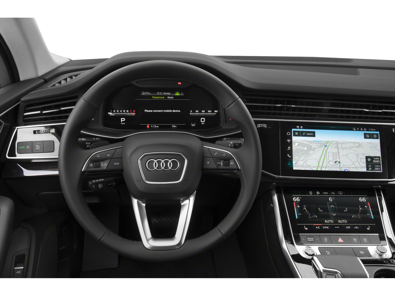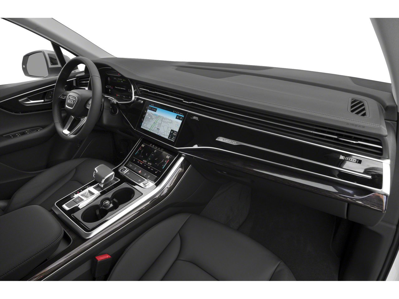 This 2023 Audi Q7 45 Premium quattro in comes with the following features: 2.0L 4-Cylinder TFSI 8-Speed Automatic with Tiptronic quattro 10 Speakers, 18 Alloy wheels, 3.76 Axle Ratio, 3rd row seats: bench, 4-Wheel Disc Brakes, ABS brakes, Air Conditioning, AM/FM radio: SiriusXM w/ 360L, Auto High-beam Headlights, Auto-dimming door mirrors, Auto-dimming Rear-View mirror, Automatic temperature control, Brake assist, Bumpers: body-color, Compass, Delay-off headlights, Driver door bin, Driver vanity mirror, Dual front impact airbags, Dual front side impact airbags, Electronic Stability Control, Emergency communication system: Audi connect CARE, Exterior Parking Camera Rear, Four wheel independent suspension, Front anti-roll bar, Front Bucket Seats, Front Center Armrest, Front dual zone A/C, Front fog lights, Front reading lights, Fully automatic headlights, Garage door transmitter: HomeLink, Genuine wood door panel insert, Heated door mirrors, Heated Front Bucket Seats, Heated front seats, Illuminated entry, Leather Seating Surfaces, Leather Shift Knob, Leather steering wheel, Low tire pressure warning, Memory seat, Navigation system: Audi MMI Navigation plus with Touch Response, Occupant sensing airbag, Outside temperature display, Overhead airbag, Overhead console, Panic alarm, Passenger door bin, Passenger vanity mirror, Power door mirrors, Power driver seat, Power Liftgate, Power moonroof: Panoramic, Power passenger seat, Power steering, Power windows, Radio data system, Radio: Audi Sound System, Rain sensing wipers, Rear air conditioning, Rear anti-roll bar, Rear fog lights, Rear reading lights, Rear seat center armrest, Rear side impact airbag, Rear window defroster, Rear window wiper, Reclining 3rd row seat, Remote keyless entry, Roof rack: rails only, Security system, Speed control, Speed-sensing steering, Split folding rear seat, Spoiler, Steering wheel memory, Steering wheel mounted audio controls, Tachometer, Telescoping steering wheel, Tilt steering wheel, Traction control, Trip computer, Turn signal indicator mirrors, Variably intermittent wipers, and Wheels: 19 5-Arm-Star Design.
