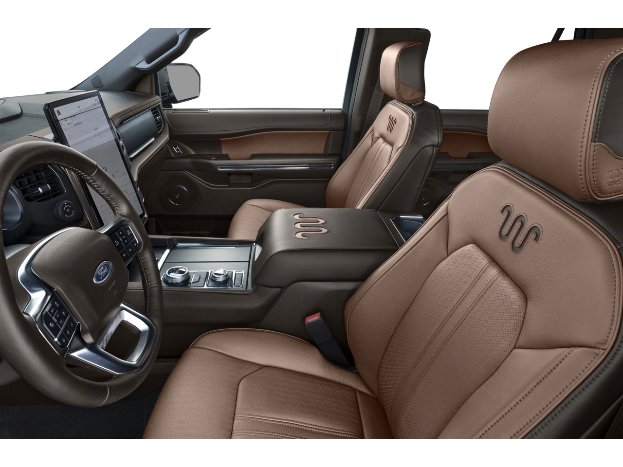 This 2023 Ford Expedition Max King Ranch in Star White Metallic Tri-Coat comes with the following features: EcoBoost 3.5L V6 GTDi DOHC 24V Twin Turbocharged 10-Speed Automatic 4WD Equipment Group 400A Standard Package, Heavy-Duty Trailer Tow Package (26mm Engine Radiator, 3.73 Axle Ratio, 360-Degree Camera w/Trailer Reverse Guidance, Integrated Trailer Brake Controller, and Pro Trailer Backup Assist), 22 Speakers, 3.31 Axle Ratio, 3rd row seats: split-bench, 4-Wheel Disc Brakes, ABS brakes, Adjustable pedals, Advanced Cargo Manager, Air Conditioning, Alloy wheels, AM/FM radio: SiriusXM with 360L, Auto High-beam Headlights, Auto Start-Stop Removal (DISC), Auto-dimming door mirrors, Auto-dimming Rear-View mirror, Automatic temperature control, Black Roof-Rail Crossbars, Brake assist, Bumpers: body-color, Compass, Continuous Controlled Damping (CCD), ControlTrac w/3.73 Axle Ratio, Delay-off headlights, Driver door bin, Driver vanity mirror, Dual front impact airbags, Dual front side impact airbags, Electronic Stability Control, Emergency communication system: SYNC 4 911 Assist, Exterior Parking Camera Rear, Four wheel independent suspension, Front anti-roll bar, Front Bucket Seats, Front Center Armrest, Front dual zone A/C, Front fog lights, Front reading lights, Fully automatic headlights, Garage door transmitter, Genuine wood console insert, Genuine wood dashboard insert, Genuine wood door panel insert, Hands-Free Foot-Activated Liftgate Removal (DISC), Heated door mirrors, Heated front seats, Heated rear seats, Heated steering wheel, Heated/Vent Prem Del Rio Lthr Fr Captain's Chairs, Illuminated entry, Leather steering wheel, Low tire pressure warning, Memory seat, Navigation system: Connected Navigation, Occupant sensing airbag, Outside temperature display, Overhead airbag, Overhead console, Panic alarm, Passenger door bin, Passenger vanity mirror, Pedal memory, Power door mirrors, Power driver seat, Power Liftgate, Power moonroof, Power passenger seat, Power steering, Power windows, Radio data system, Radio: B&O Unleashed Sound System by Bang & Olufsen, Rain sensing wipers, Rear air conditioning, Rear anti-roll bar, Rear reading lights, Rear window defroster, Rear window wiper, Reclining 3rd row seat, Remote keyless entry, Second Row Power Windows Removal, Security system, SiriusXM w/360L, Speed control, Speed-sensing steering, Speed-Sensitive Wipers, Split folding rear seat, Spoiler, Steering wheel memory, Steering wheel mounted audio controls, SYNC 4 w/Enhanced Voice Recognition, Tachometer, Telescoping steering wheel, Tilt steering wheel, Traction control, Trip computer, Turn signal indicator mirrors, Variably intermittent wipers, Ventilated front seats, Voltmeter, and Wheels: 22 6-Spoke Polished Aluminum.