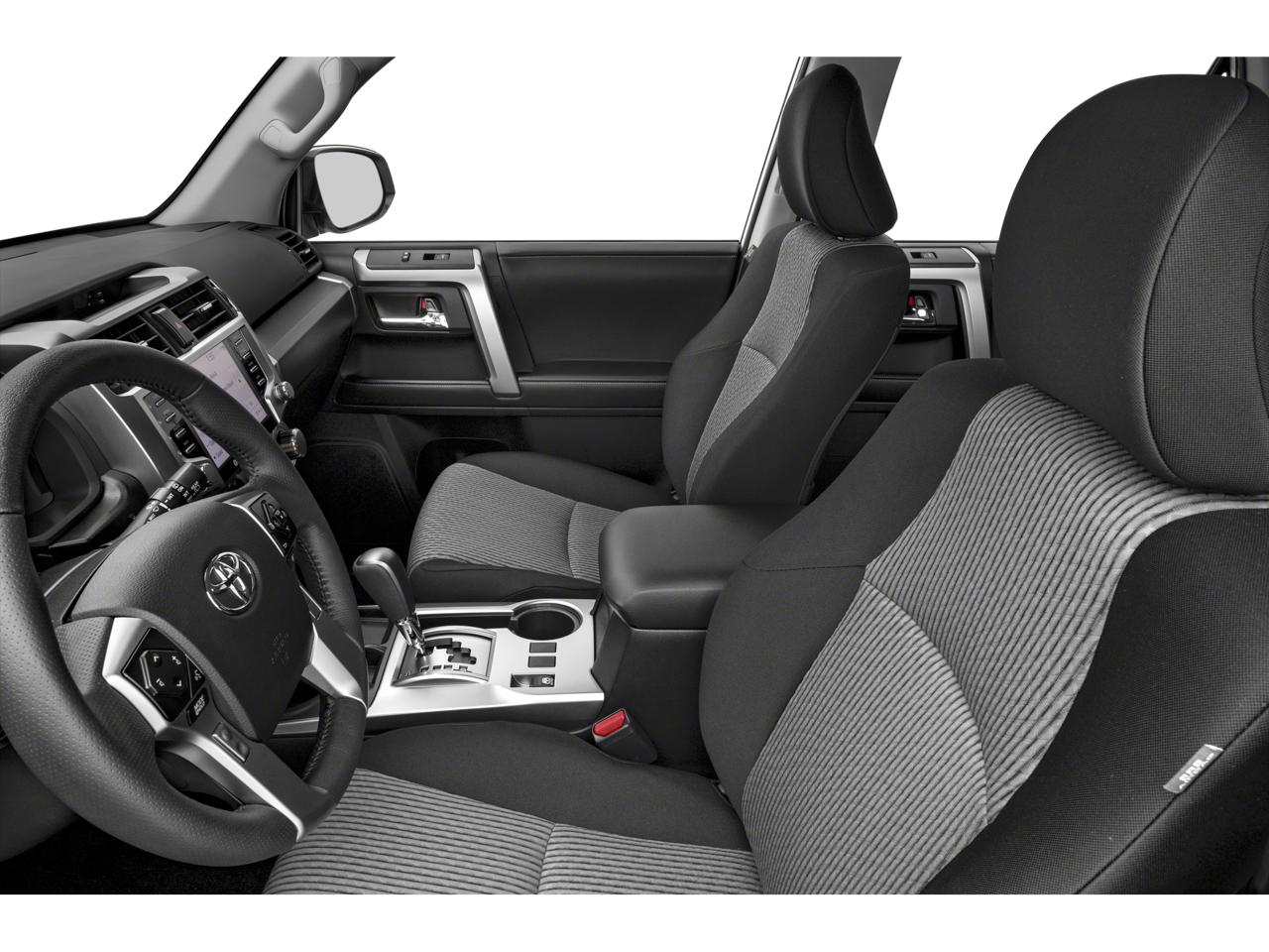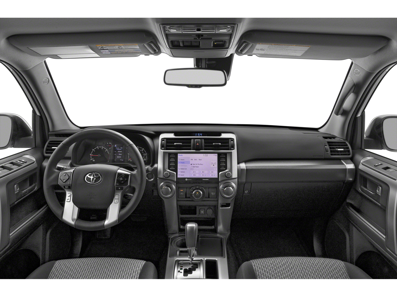 This 2023 Toyota 4Runner SR5 in comes with the following features: 4.0L V6 DOHC 24V 5-Speed with ECT RWD Cloth, 17 6-Spoke Alloy Wheels, 18 Alloy wheels, 3.727 Axle Ratio, 4-Wheel Disc Brakes, 8 Speakers, ABS brakes, Air Conditioning, AM/FM radio: SiriusXM, Anti-whiplash front head restraints, Apple CarPlay/Android Auto, Auto High-beam Headlights, Brake assist, Bumpers: body-color, Driver door bin, Driver vanity mirror, Dual front impact airbags, Dual front side impact airbags, Electronic Stability Control, Emergency communication system: Safety Connect (1-year trial), Exterior Parking Camera Rear, Fabric Seat Trim, Front anti-roll bar, Front Bucket Seats, Front Center Armrest, Front fog lights, Front reading lights, Front wheel independent suspension, Heated door mirrors, Illuminated entry, Knee airbag, Leather Shift Knob, Leather steering wheel, Low tire pressure warning, Occupant sensing airbag, Outside temperature display, Overhead airbag, Overhead console, Panic alarm, Passenger door bin, Passenger vanity mirror, Power door mirrors, Power driver seat, Power steering, Power windows, Radio: Audio, Rear anti-roll bar, Rear seat center armrest, Rear window defroster, Rear window wiper, Remote keyless entry, Security system, Speed control, Speed-sensing steering, Split folding rear seat, Spoiler, Steering wheel mounted audio controls, Tachometer, Telescoping steering wheel, Tilt steering wheel, Traction control, Trip computer, and Variably intermittent wipers.