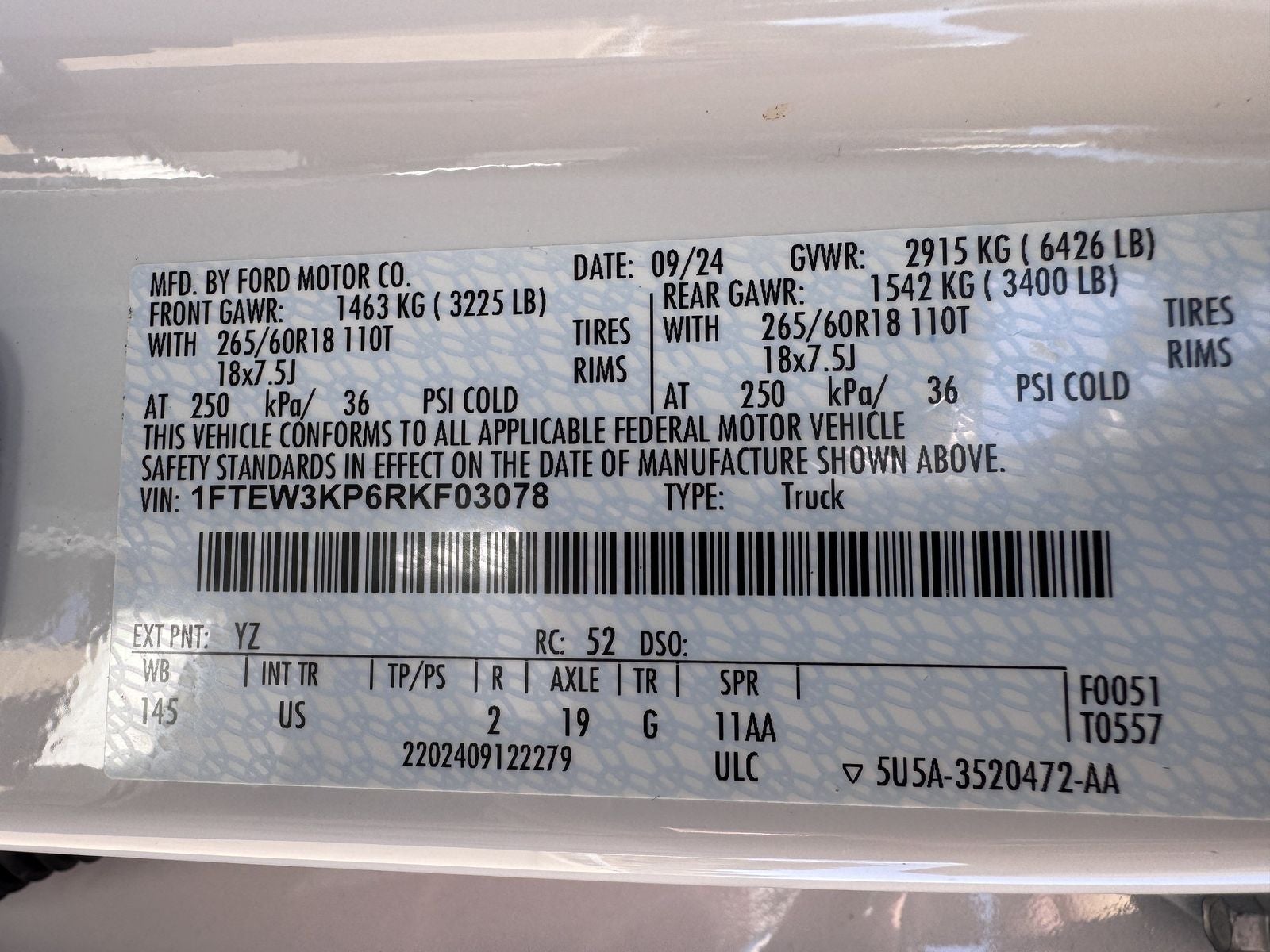 This 2024 Ford F-150 XLT in Oxford White comes with the following features: 2.7L V6 EcoBoost 10-Speed Automatic RWD Equipment Group 302A Mid (400W Cab & Bed Outlets, Adaptive Cruise Control w/Stop & Go, Auto-Dimming Rear-View Mirror, Cloth 40/Console/40 Front Seats, Ford BlueCruise Equipped (90-Day Trial), Heated Front Seats, Intelligent Access w/Push Button Start, Power Glass Heated Sideview Mirrors, Power-Sliding Rear Window, Remote Start System w/Remote Tailgate Release, and Speed Sign Recognition), GVWR: 6,426 lbs Payload Package, 3.55 Axle Ratio, 4-Wheel Disc Brakes, 6 Speakers, ABS brakes, Air Conditioning, Alloy wheels, AM/FM radio: SiriusXM with 360L, Auto High-beam Headlights, Auto-dimming Rear-View mirror, Automatic temperature control, Brake assist, Bumpers: chrome, Chrome wheels, Cloth 40/20/40 Front Seat, Compass, Delay-off headlights, Driver door bin, Driver vanity mirror, Dual front impact airbags, Dual front side impact airbags, Electronic Stability Control, Emergency communication system: SYNC 4 911 Assist, Front anti-roll bar, Front Center Armrest w/Storage, Front dual zone A/C, Front fog lights, Front License Plate Bracket, Front reading lights, Front wheel independent suspension, Fully automatic headlights, Heated door mirrors, Illuminated entry, Low tire pressure warning, Navigation system: Connected Navigation, Occupant sensing airbag, Outside temperature display, Overhead airbag, Overhead console, Panic alarm, Passenger door bin, Passenger vanity mirror, Power door mirrors, Power driver seat, Power steering, Power windows, Radio data system, Radio: AM/FM SiriusXM w/360L, Rear reading lights, Rear step bumper, Rear window defroster, Remote keyless entry, Security system, Speed control, Split folding rear seat, Steering wheel mounted audio controls, SYNC 4 w/Enhanced Voice Recognition, Tachometer, Telescoping steering wheel, Tilt steering wheel, Traction control, Trip computer, Variably intermittent wipers, Voltmeter, and Wheels: 18 Chrome-Like PVD. Odometer is 7819 miles below market average!