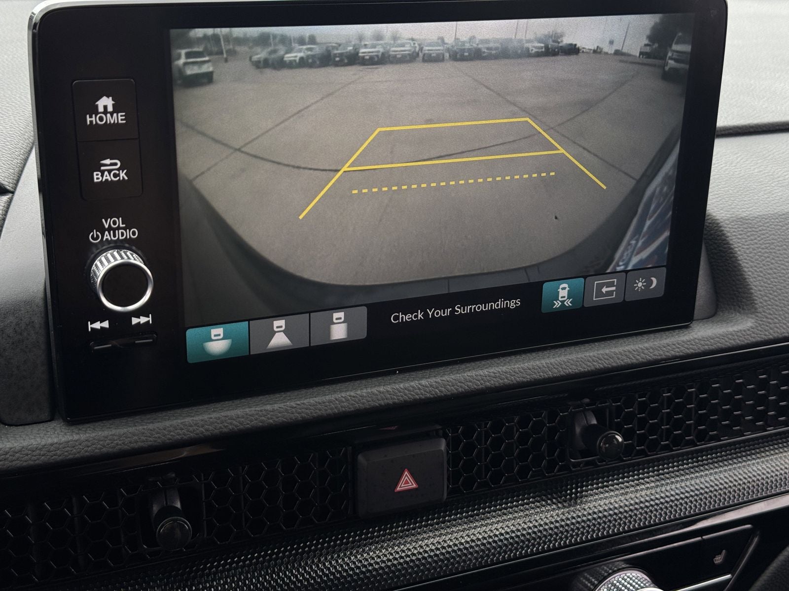 This 2024 Honda CR-V Hybrid Sport Touring in comes with the following features: 2.0L I4 DOHC 16V eCVT AWD 2.0L I4 DOHC 16V, 12 Speakers, 18 Alloy wheels, 4-Wheel Disc Brakes, 4.438 Axle Ratio, ABS brakes, Adaptive Cruise Control: Adaptive Cruise Control (ACC) with Low-Speed Follow, Air Conditioning, AM/FM radio: SiriusXM, Auto High-beam Headlights, Auto-dimming Rear-View mirror, Automatic temperature control, Blind Spot Information (BSI) System warning, Brake assist, Bumpers: body-color, Compass, Delay-off headlights, Driver door bin, Driver vanity mirror, Dual front impact airbags, Dual front side impact airbags, Electronic Stability Control, Exterior Parking Camera Rear, Four wheel independent suspension, Front anti-roll bar, Front Bucket Seats, Front Center Armrest, Front dual zone A/C, Front reading lights, Fully automatic headlights, Heated door mirrors, Heated Front Bucket Seats, Heated front seats, Heated steering wheel, Illuminated entry, Knee airbag, Leather Seat Trim, Leather Shift Knob, Leather steering wheel, Low tire pressure warning, Memory seat, Navigation system: Honda Satellite-Linked Navigation System, Occupant sensing airbag, Outside temperature display, Overhead airbag, Overhead console, Panic alarm, Passenger door bin, Passenger vanity mirror, Power door mirrors, Power driver seat, Power Liftgate, Power moonroof, Power passenger seat, Power steering, Power windows, Radio data system, Radio: Bose Premium Sound System w/Navigation, Rain sensing wipers, Rear anti-roll bar, Rear reading lights, Rear seat center armrest, Rear side impact airbag, Rear window defroster, Rear window wiper, Remote keyless entry, Security system, Speed control, Speed-sensing steering, Speed-Sensitive Wipers, Split folding rear seat, Spoiler, Steering wheel mounted audio controls, Telescoping steering wheel, Tilt steering wheel, Traction control, Trip computer, Turn signal indicator mirrors, Variably intermittent wipers, Wheels: 19 Berlina Black Alloy, and Wireless Apple CarPlay/Wireless Android Auto.