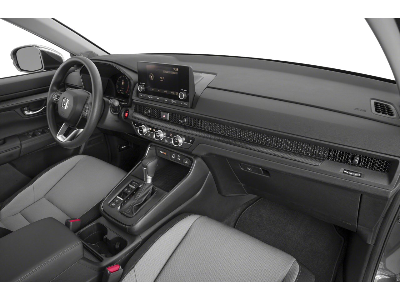 This 2024 Honda CR-V EX in sparkle silver metallic comes with the following features: 1.5L I4 DOHC 16V CVT AWD AWD, 18 Alloy wheels, 4-Wheel Disc Brakes, 5.64 Axle Ratio, 6 Speakers, ABS brakes, Adaptive Cruise Control: Adaptive Cruise Control (ACC) with Low-Speed Follow, Air Conditioning, Apple CarPlay/Android Auto, Auto High-beam Headlights, Automatic temperature control, Blind Spot Information (BSI) System warning, Brake assist, Bumpers: body-color, Cloth Seat Trim, Compass, Delay-off headlights, Driver door bin, Driver vanity mirror, Dual front impact airbags, Dual front side impact airbags, Electronic Stability Control, Exterior Parking Camera Rear, Four wheel independent suspension, Front anti-roll bar, Front Bucket Seats, Front Center Armrest, Front dual zone A/C, Front reading lights, Fully automatic headlights, Heated door mirrors, Heated Front Bucket Seats, Heated front seats, Illuminated entry, Knee airbag, Low tire pressure warning, Occupant sensing airbag, Outside temperature display, Overhead airbag, Overhead console, Panic alarm, Passenger door bin, Passenger vanity mirror, Power door mirrors, Power driver seat, Power moonroof, Power steering, Power windows, Radio data system, Radio: 240-Watt AM/FM Audio System, Rear anti-roll bar, Rear reading lights, Rear seat center armrest, Rear side impact airbag, Rear window defroster, Rear window wiper, Remote keyless entry, Security system, Speed control, Speed-sensing steering, Speed-Sensitive Wipers, Split folding rear seat, Spoiler, Steering wheel mounted audio controls, Tachometer, Telescoping steering wheel, Tilt steering wheel, Traction control, Trip computer, Turn signal indicator mirrors, Variably intermittent wipers, and Wheels: 18 Sparkle Silver Metallic.