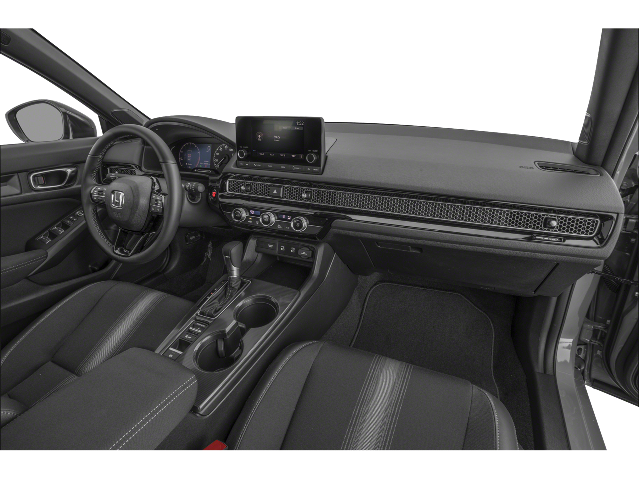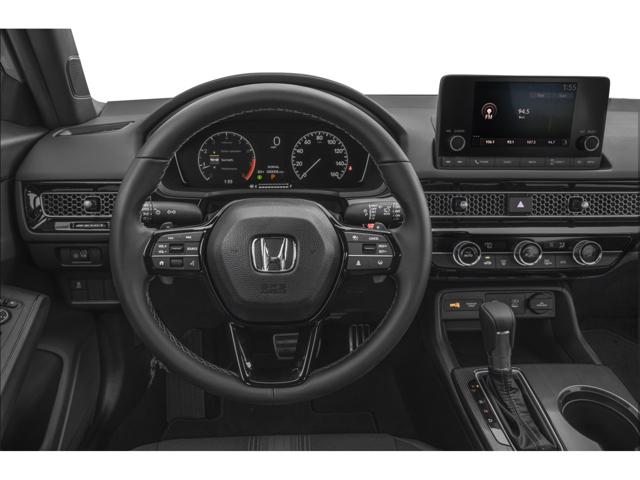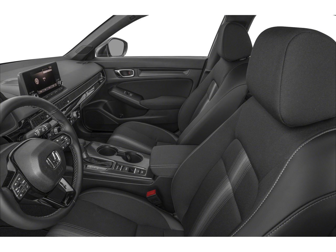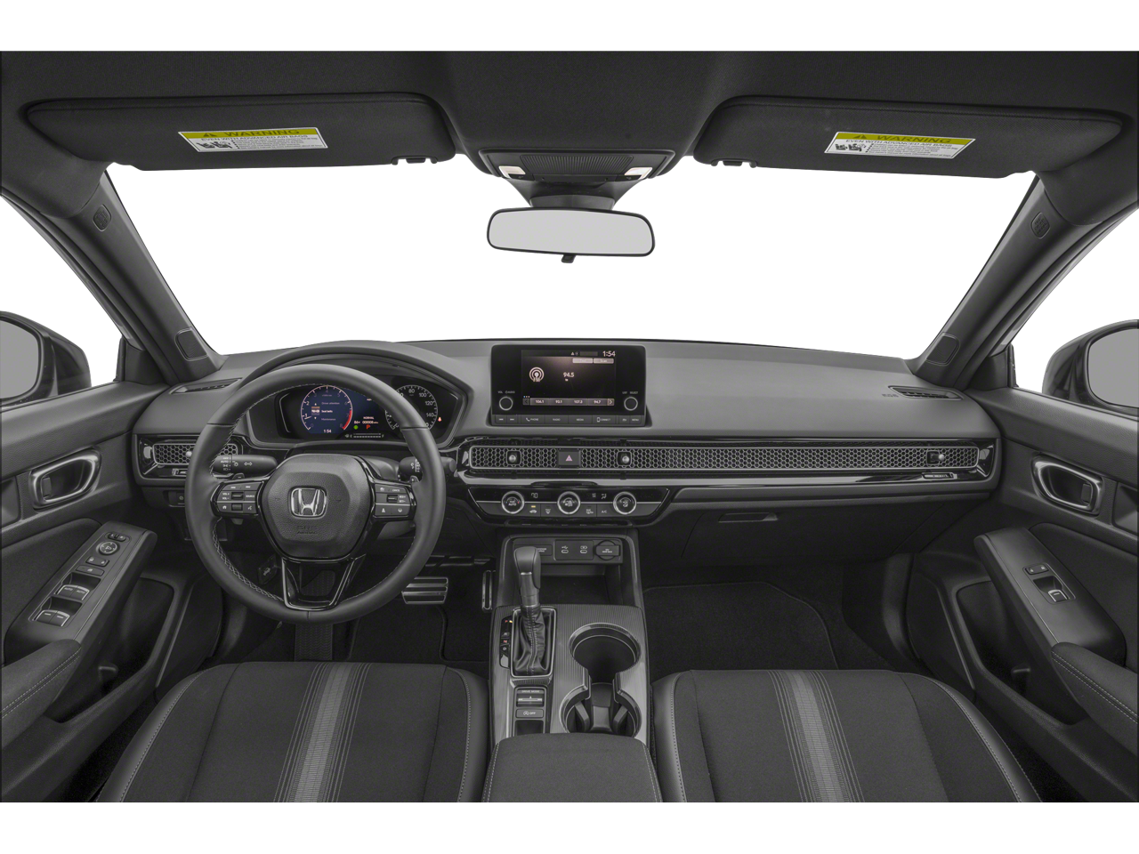 This 2025 Honda Civic Sport in White comes with the following features: 2.0L I4 DOHC 16V CVT FWD 4-Wheel Disc Brakes, 8 Speakers, ABS brakes, Adaptive Cruise Control: Adaptive Cruise Control (ACC) with Low-Speed Follow, Air Conditioning, Alloy wheels, AM/FM radio, Apple CarPlay/Android Auto, Auto High-beam Headlights, Automatic temperature control, Blind Spot Information (BSI) System warning, Brake assist, Bumpers: body-color, Cloth/Leatherette Seating Surfaces, Delay-off headlights, Driver door bin, Driver vanity mirror, Dual front impact airbags, Dual front side impact airbags, Electronic Stability Control, Emergency communication system: HondaLink, Exterior Parking Camera Rear, Four wheel independent suspension, Front anti-roll bar, Front Bucket Seats, Front Center Armrest, Front reading lights, Fully automatic headlights, Heated door mirrors, Illuminated entry, Knee airbag, Lane departure: Lane Keeping Assist System (LKAS) active, Leather Shift Knob, Low tire pressure warning, Occupant sensing airbag, Outside temperature display, Overhead airbag, Panic alarm, Passenger door bin, Passenger vanity mirror, Power door mirrors, Power steering, Power windows, Radio data system, Radio: 180-Watt Audio System, Rear anti-roll bar, Rear side impact airbag, Rear window defroster, Rear window wiper, Remote keyless entry, Security system, Speed control, Speed-sensing steering, Split folding rear seat, Steering wheel mounted audio controls, Tachometer, Telescoping steering wheel, Tilt steering wheel, Traction control, Trip computer, and Wheels: 18 Gloss Black Alloy.
